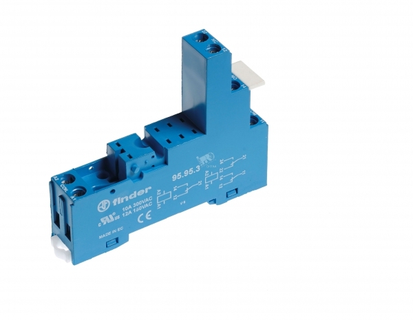Розетка для реле 40.51, 40.52, 40.61, 44.52, 44.62 и модуля 99.80; с раздельными контактами; с пластиковым фиксатором; винтовые зажимы; синяя; 10А