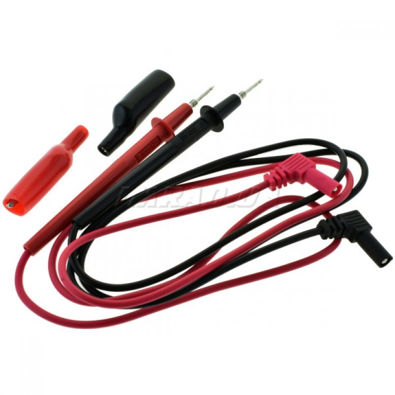 Измерительные щупы к мультиметру, угловой разъем. В комплекте две насадки типа "крокодил", изолированные.